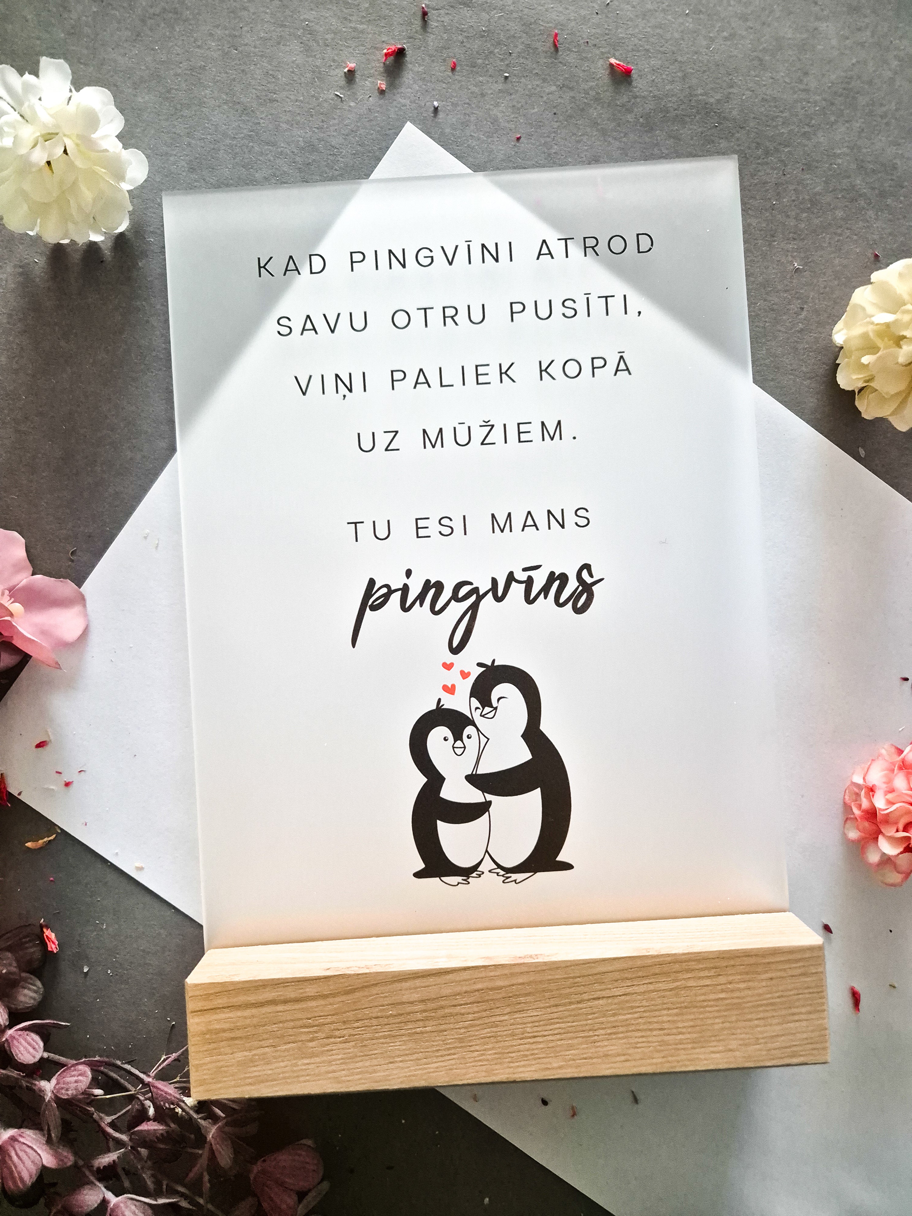Trükitud orgaaniline klaas tammepuidust alusel.