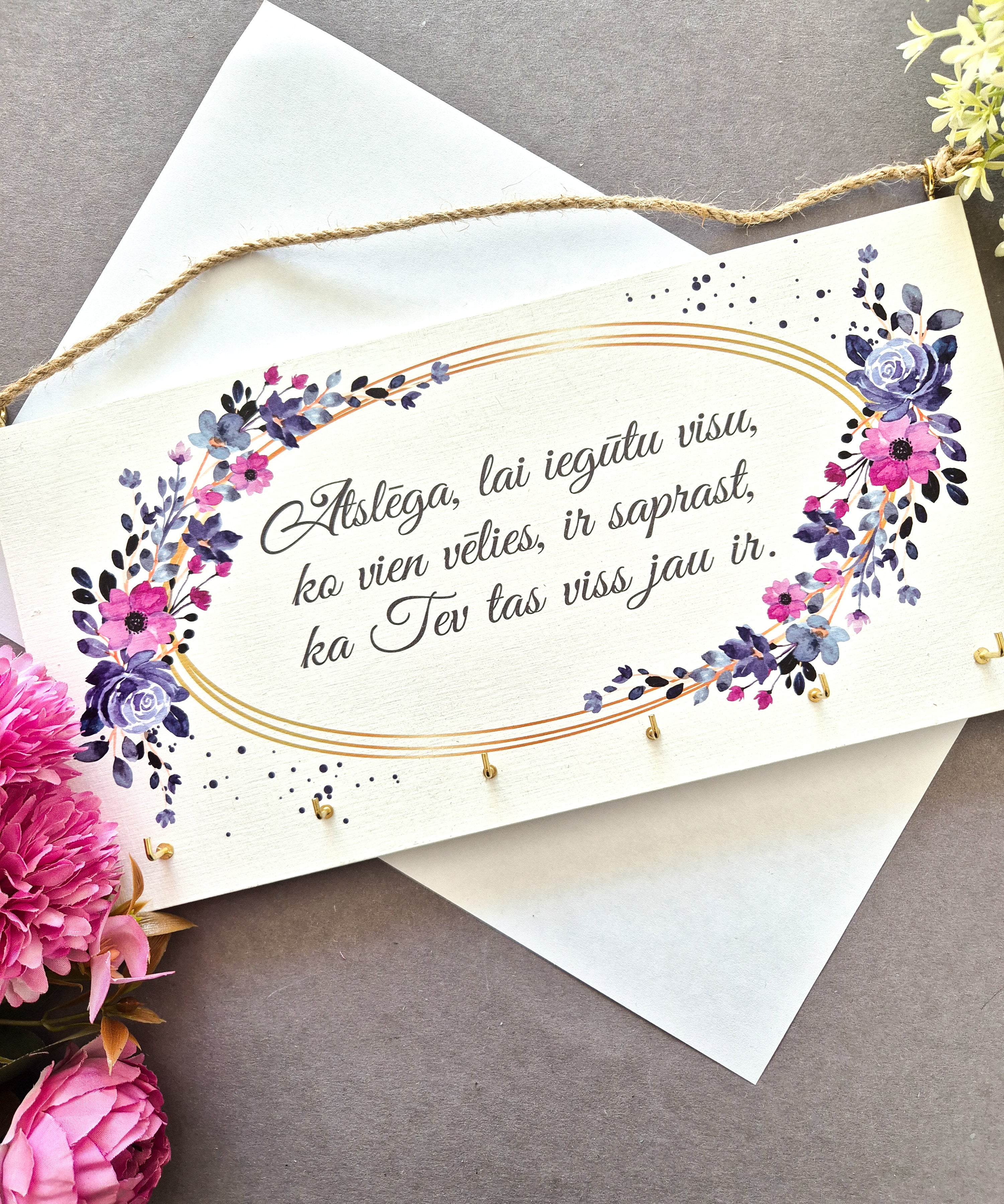 Iga kodu muutub eriliseks, kui see on korras ja sa tead, et sind on teretulnud. Personaalsed puidust kaunistused võtmekonksudega ühendavad praktilisuse soojusega ning pakuvad kohta väikestele, aga olulistele asjadele.
