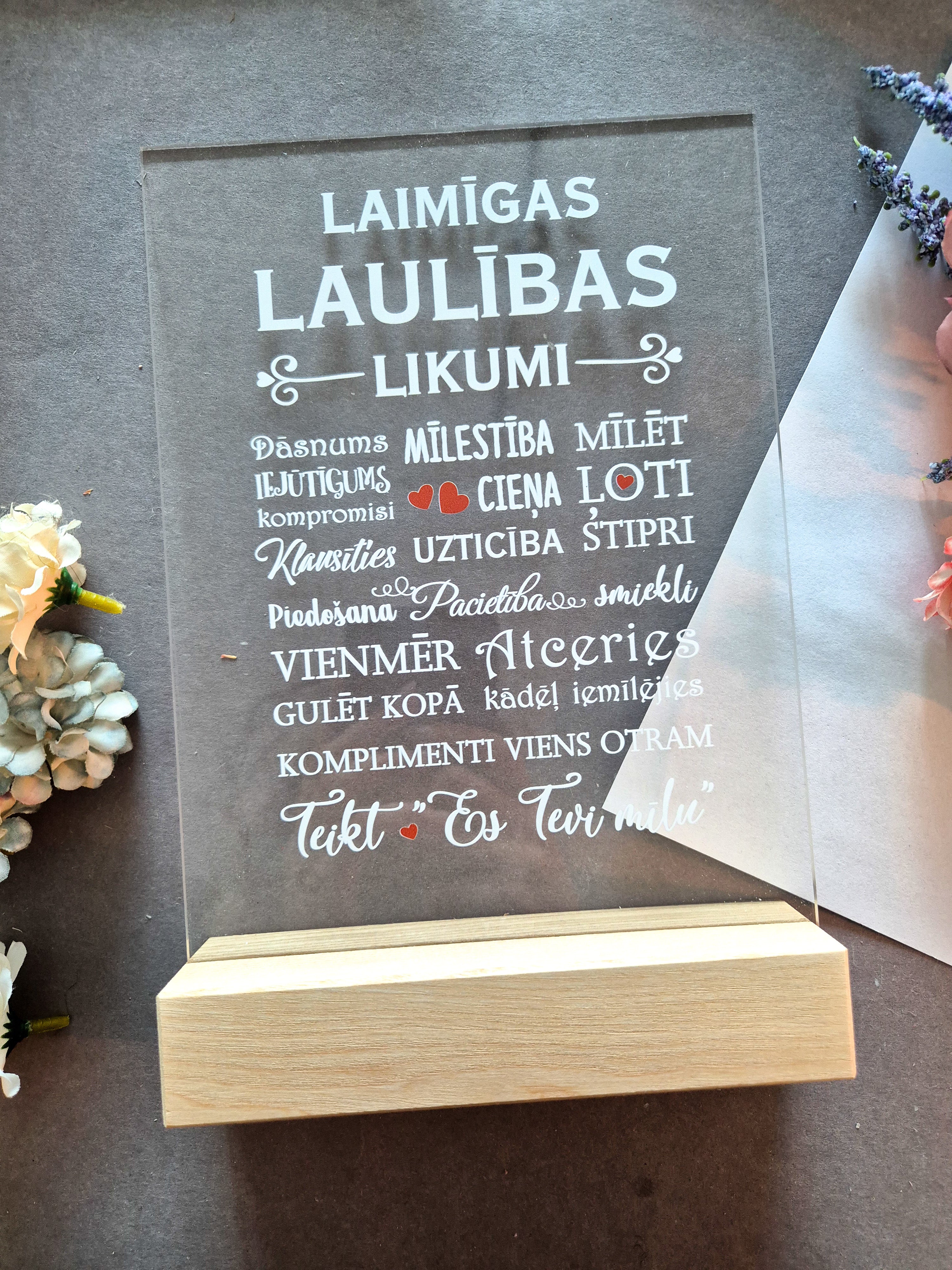 Visi dekori tiek izgatavoti 1–2 darba dienu laikā pēc pasūtījuma apstiprināšanas. Mēs rūpīgi izstrādājam katru detaļu, lai dāvana būtu gan skaista, gan sirsnīga.