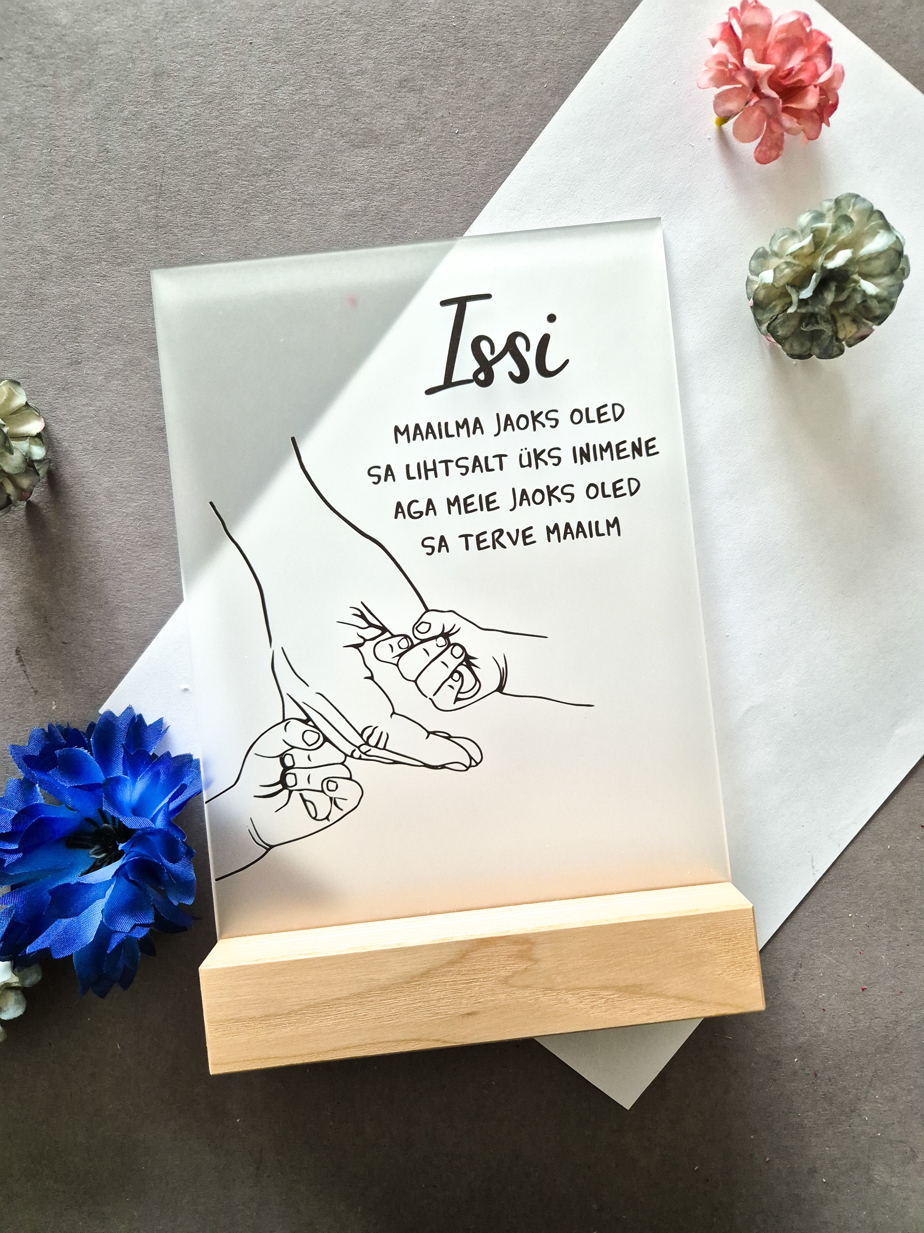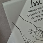 Trükitud pleksiklaas tammepuidust akals. Klaasi mõõtmed 15x21 cm